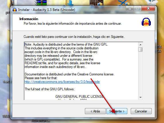 La instalación la realizarán en el lugar que el Asistente de Audacity nos indica por defecto.