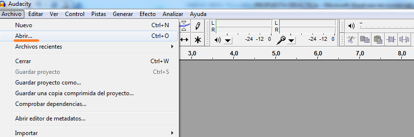 Para abrir un archivo de audio los alumnos/as tendrán que hacer clic en el menú Archivo-Abrir
