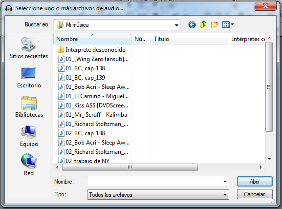 A partir de aquí se les abrirá una ventana desde la que habrá que localizar el archivo de audio que se desea utilizar.