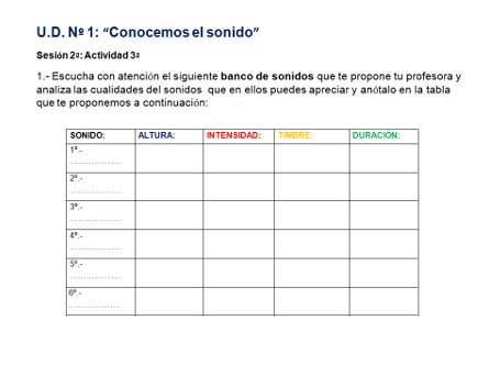 Tercera actividad. Discriminación de las cualidades del sonido mediante el uso de bancos de sonidos.