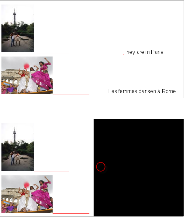 Hacer una página en la que aparezcan imágenes de acciones y la frase que representa las mismas, escritas en el idioma a trabajar. Se tapa con la herramienta cortina o sombra de pantalla. Se deja tapada y cuando todos los alumnos/as estén preparados se despliega para mostrar el contenido de la tabla durante unos segundos. A continuación cada grupo (de más o menos siete miembros) deberá recordar las imágenes que han visto anotando su nombre. Cada grupo dirá las imágenes que recuerda y se irán anotando en la PDI.