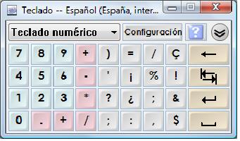 Teclado numérico. Dirigido para facilitar el manejo de los números y las operaciones.