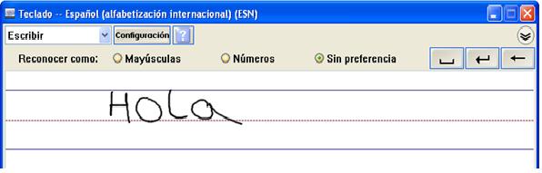 - Abre el teclado y elige Escribir. Aparece esta ventana en la que escribes el texto con el dedo o con un rotulador cualquiera.