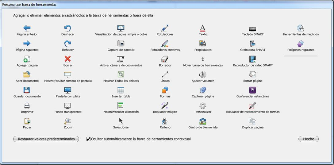 Puedes personalizarla seleccionando Ver > Personalizar barra de Herramientas y de este modo aparecerá la siguiente pantalla.