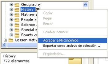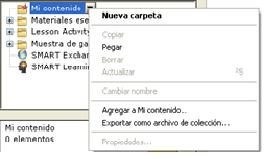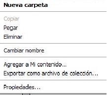 Estas carpetas de contenidos puedes exportarlas a una unidad extraíble y así poder transportarla a otro ordenador, eligiendo para ello en el menú contextual la opción "Exportar como archivo de colección".