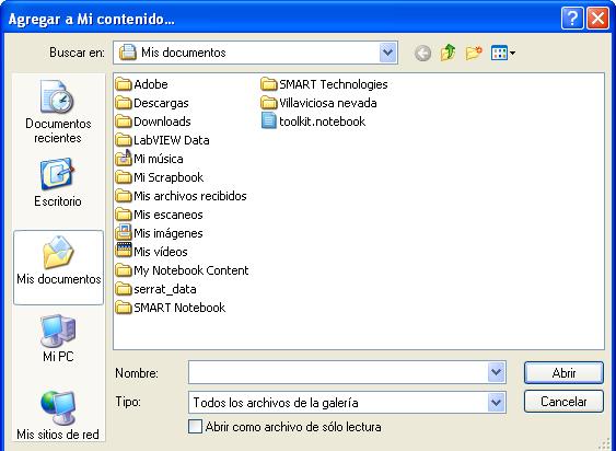 - Haciendo doble clic en el archivo, se abre el programa Notebook y al abrir la galería verás que aparece la carpeta incluida en Mi contenido.