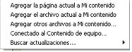 - Aparecerá un desplegable con opciones, dentro de estas opciones elige la opción "Agregar a mi contenido" y de forma automática se te abre la carpeta Mis documentos para que localices el archivo que quieres agregar a Mi contenido.