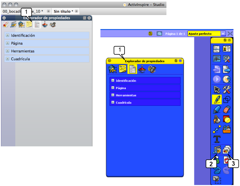 - Todos los exploradores, que son 7, Studio los coloca en la barra flotante de exploradores. Primary coloca 5 exploradores en la barra flotante y los otros dos en el cuadro de herramientas: