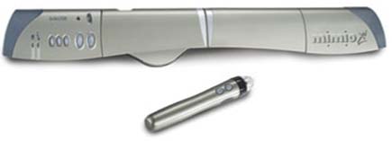 La pizarra digital Mimio consta de dos instrumentos; por un lado, la barra compacta, la cual se fija fácilmente a la pizarra y se conecta al ordenador por USB; y por otro, el lápiz mimio Interactive Stylu, el cual permite controlar la pantalla del ordenador desde la pizarra actuando como un ratón.