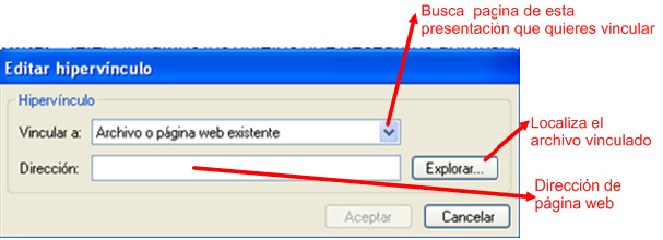objeto seleccionado a una página web, archivo de sonido, a otra