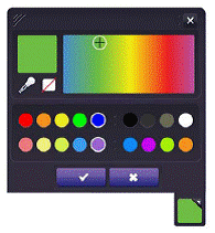 Haz clic sobre un botón de color para mostrar la paleta de colores. Esto te permite cambiar el color de la barra o relleno de los objetos en uso mediante los colores predeterminados o seleccionando un nuevo color con el mapa de colores.
